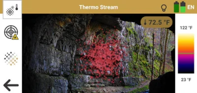 - Thermo Stream – التيار الحراري – وضع التصوير الحراري في الوقت الحقيقي من OKM للكشف عن الكهوف والمقابر المخفية خلف الجدران وفي